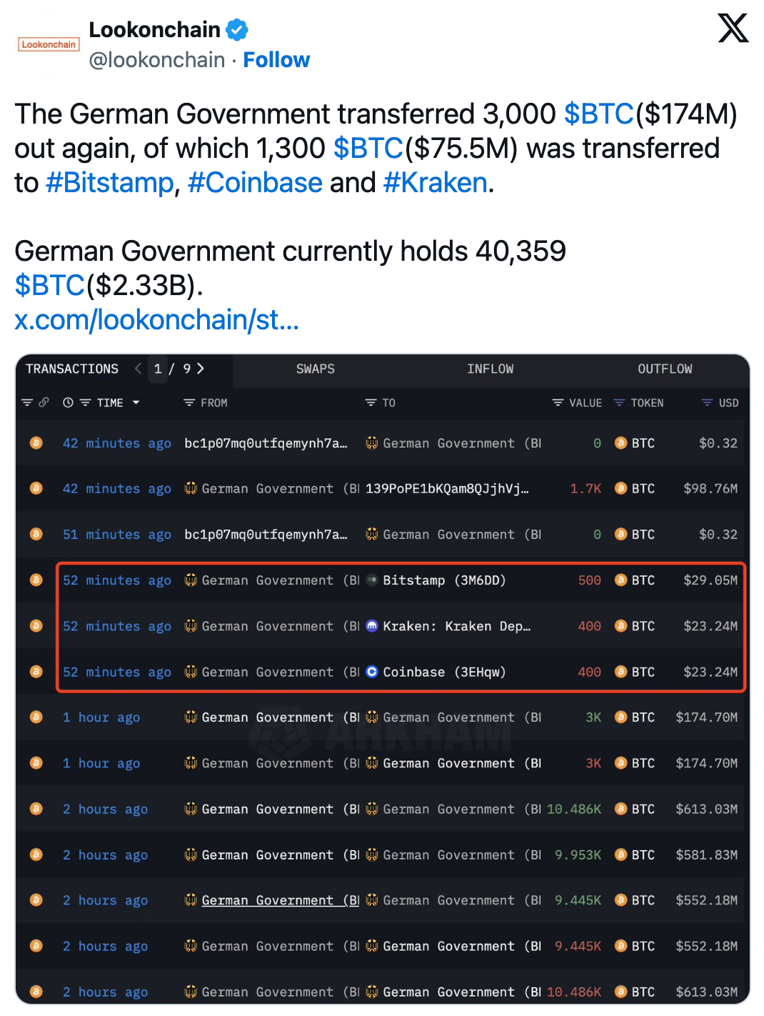 The German Government has sold $175 million worth of $BTC.