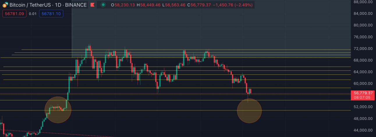 But the reality is that if $BTC doesn’t hold at its current resistance level, then we are likely to revisit the previous support levels just under $51K.